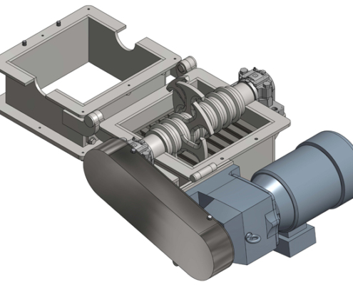 Il principio di funzionamento è quello di un mulino a martelli, i cui naspi di rotazione a bassa velocità rotante entrano nella sagoma sotto di essi. La rotazione dei martelli e la loro geometria di inserimento, a naspi sfalsati, permettono al prodotto di essere prelevato con facilità dalla parte superiore del mulino e la rottura dei grumi e delle croste più dure del materiale. La rete assicura così il passaggio di tutte le particelle di prodotto ridimensionato attraverso il moto di macinazione e selezione del rotore