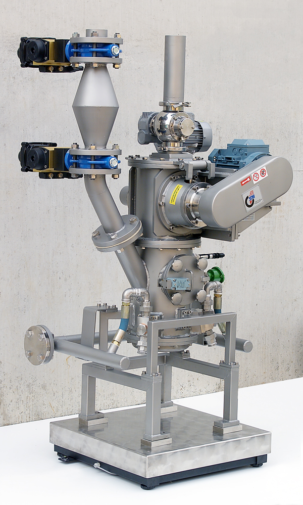 Il materiale è dosato proporzionalmente con una coclea di dosaggio volumetrica, e viene trasportato in camera di macinazione tramite una valvola a stella rotativa.